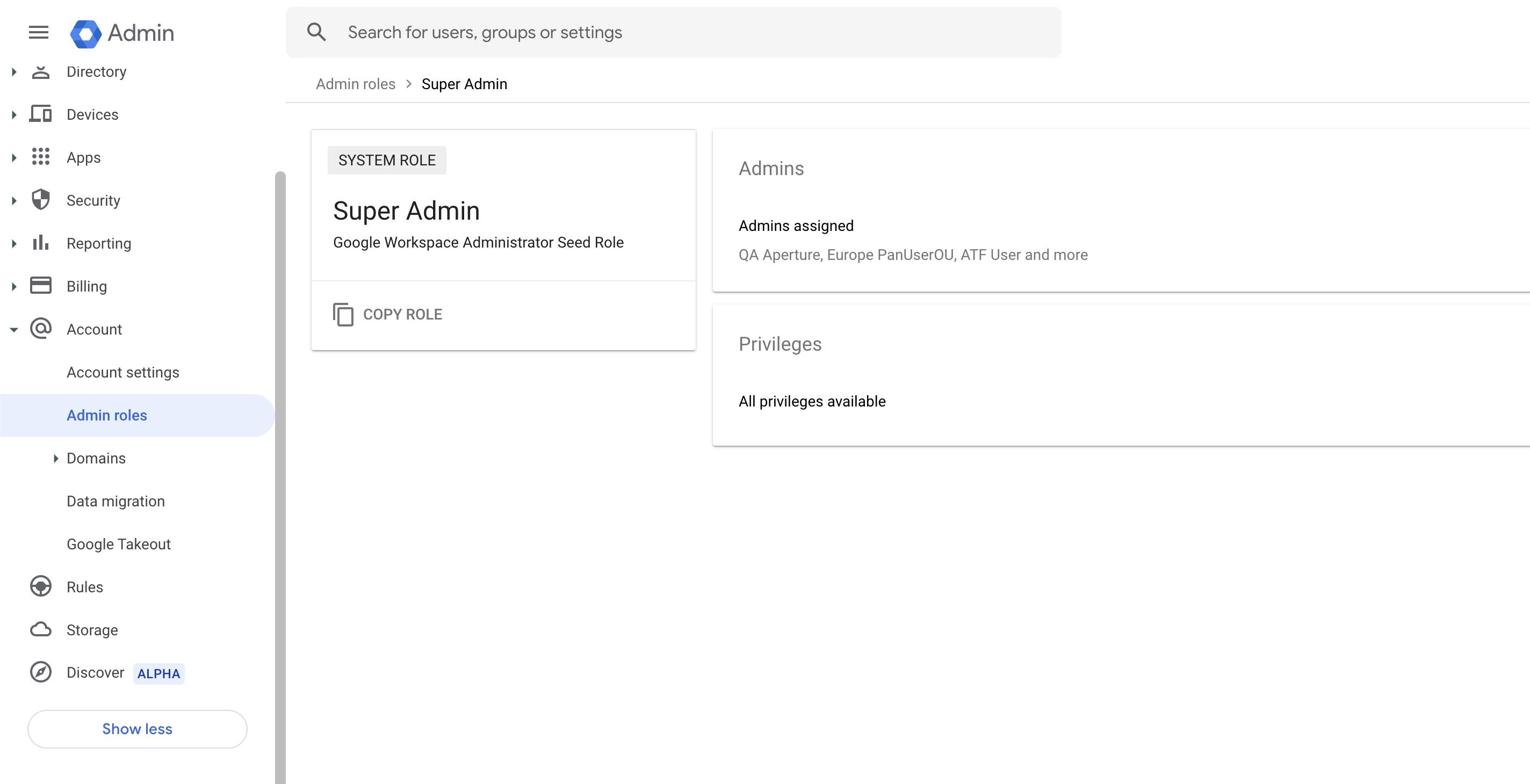 - Verify that your Google Chat administrator account is assigned a Super admin role.