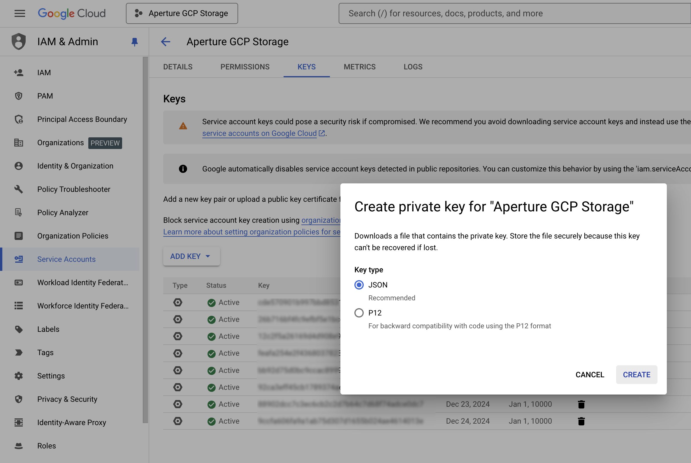 can add the Google Cloud Storage app; alternatively, you can Use an Existing Project and Service Account instead. As you prepare
