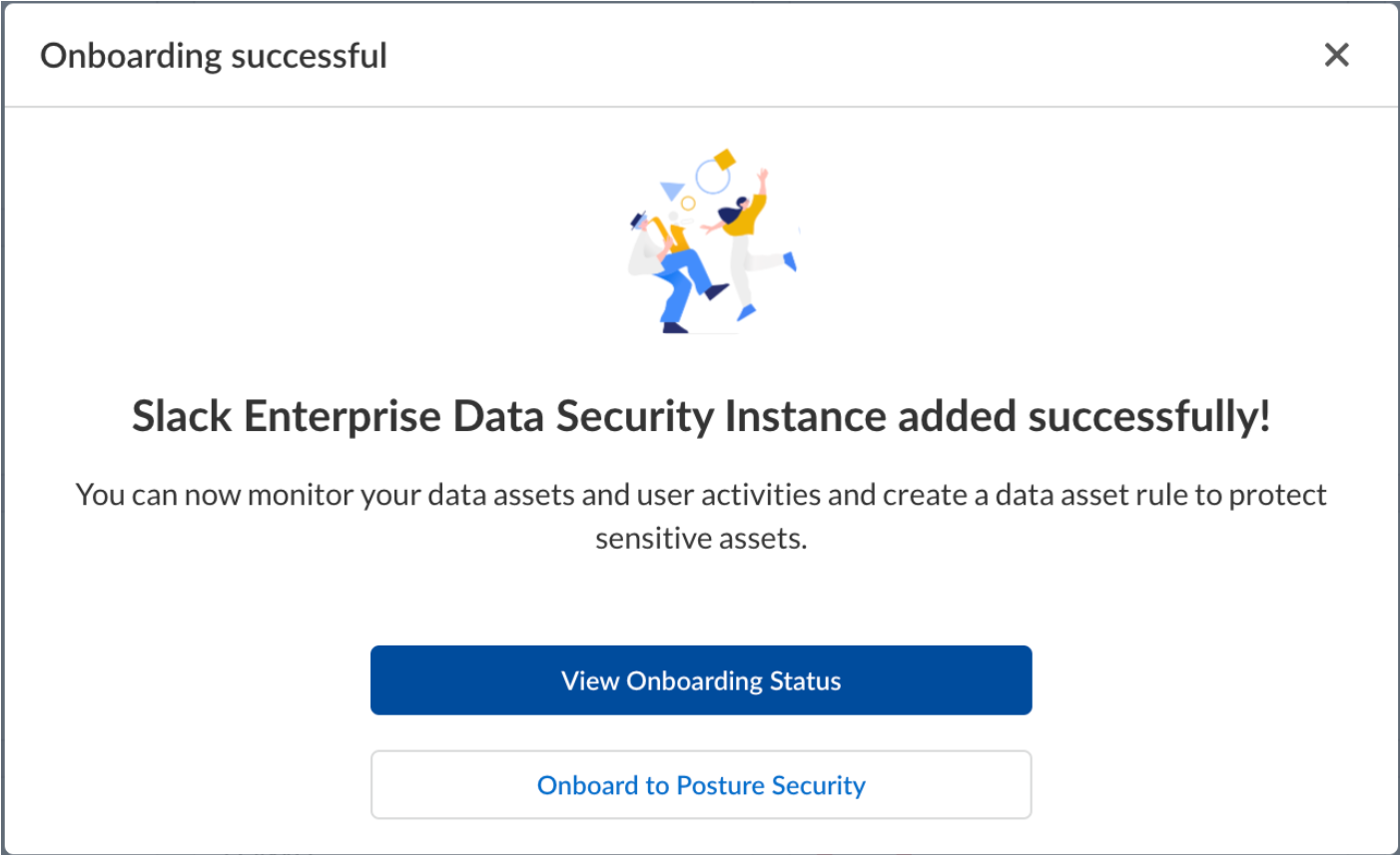 Post onboarding steps.- Click View Onboarding Status.The various details about the onboarded Slack Enterprise App are displayed.