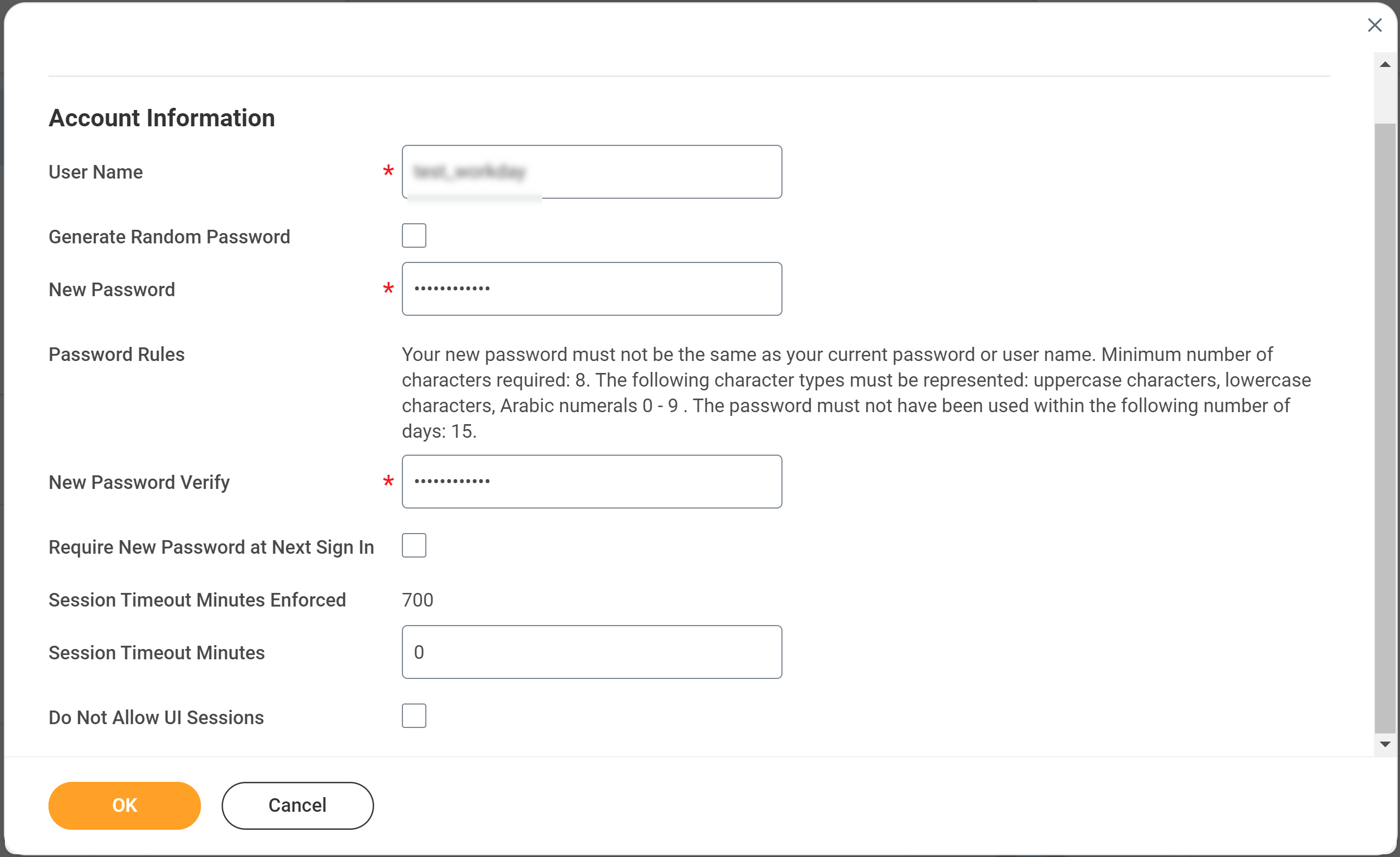 - Log in to Workday Console as a Workday Admin and search for Create Integration System User.Enter a user name and password. Ensure that Do Not Allow UI Sessions is not selected to allow first time sign-in while granting access. The check box can be disabled later after granting Strata Cloud Manager permission for accessing Workday.Click OK and then Done.