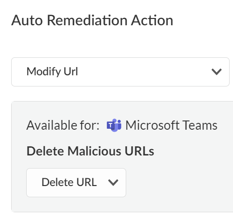 - When a phishing URL is detected, only one remediation action can be performed on the asset—User Quarantine OR Delete URL. Both remediation actions cannot be performed on the same asset.