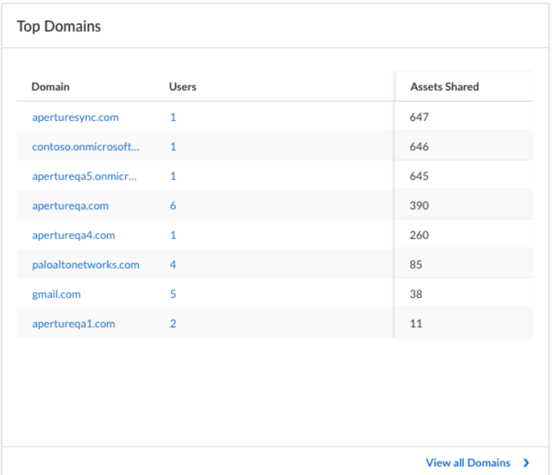 lists the top 10 domains with the most assets shared with external