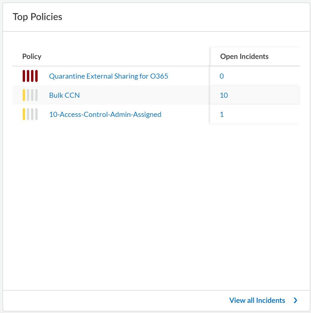 number of open incidents detected against each policy. When Data Security starts scanning files and matching them against