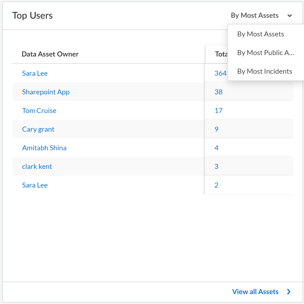 This widget displays the top data asset