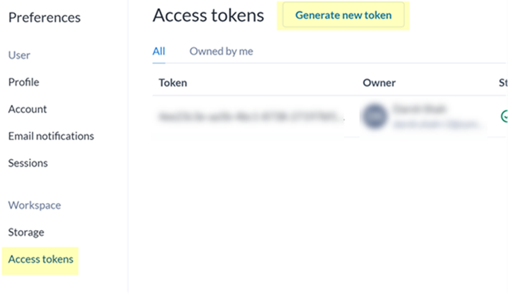 Generate an access token for your workspace.- If you have access to multiple workspaces, make sure you are in the