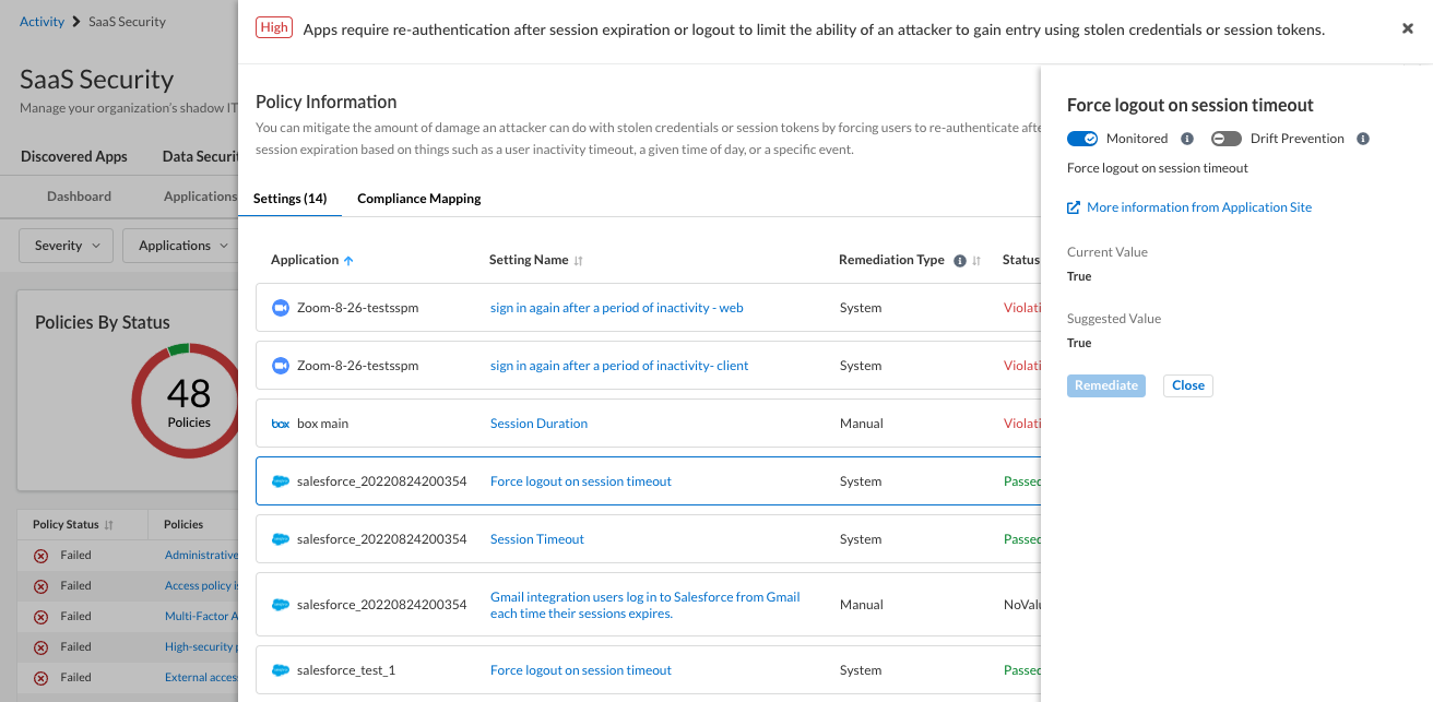 Take action in SaaS Security Posture Management to remediate SaaS app misconfigurations.