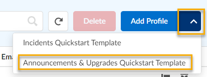 Add an Announcements and Upgrades Profile Using the Quick Start Template