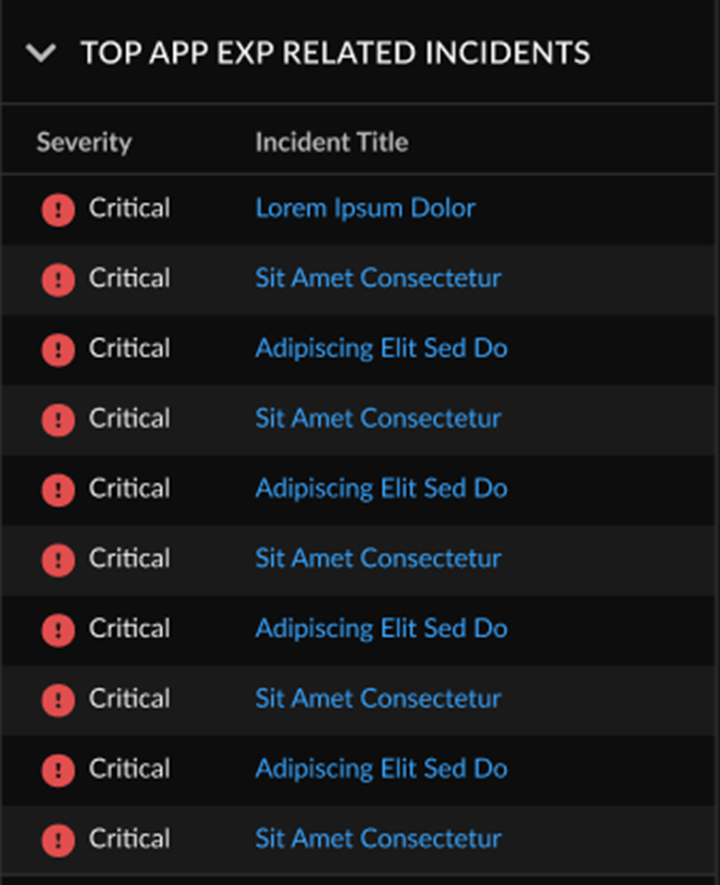 | Incidents | The number of incidents related to App Experience per-child tenant. |
