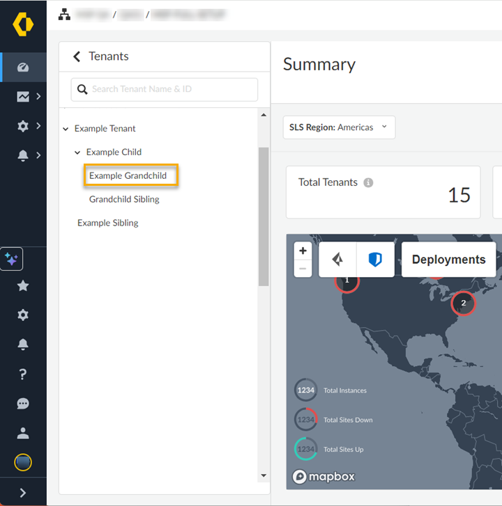 - You can see tenants within your hierarchy, and also individual tenants that you have access to. In certain situations, such as if you use Service Provider Backbone, tenants appear grayed if you're only supposed to access the top-most, root-level, parent tenant.