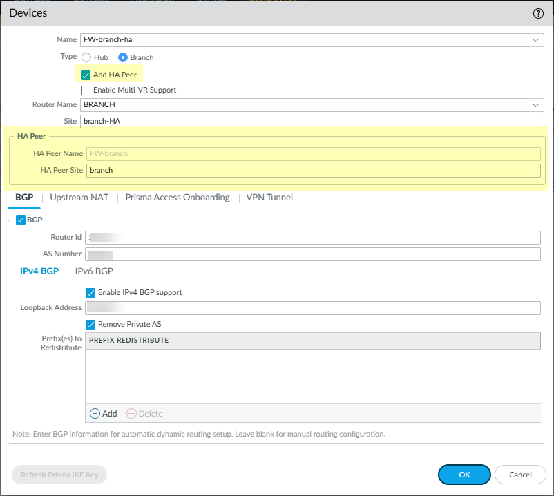 - Adding Prisma Access configuration to passive devices results in an error. Therefore, you must only add the Prisma Access configuration on the active device.