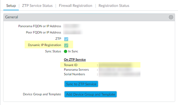- In the Panorama Administrator’s Guide, read the ZTP Overview.Install the ZTP Plugin.Configure the ZTP Installer Administrator Account.Select PanoramaZero Touch ProvisioningSetup and edit the General settings to enable Dynamic IP Registration.Click OK. The General settings indicate On ZTP Service with a Tenant ID number.