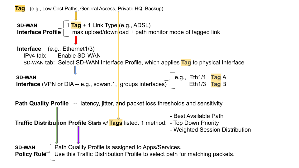 control the order that interfaces are used for traffic distribution. Tags allow Panorama to systematically configure many firewall interfaces with SD-WAN functionality.