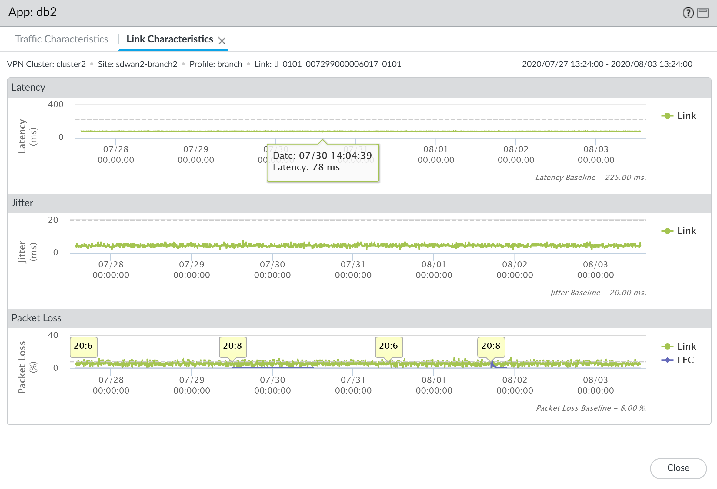 selected time frame. Additionally, you can view when forward error correction