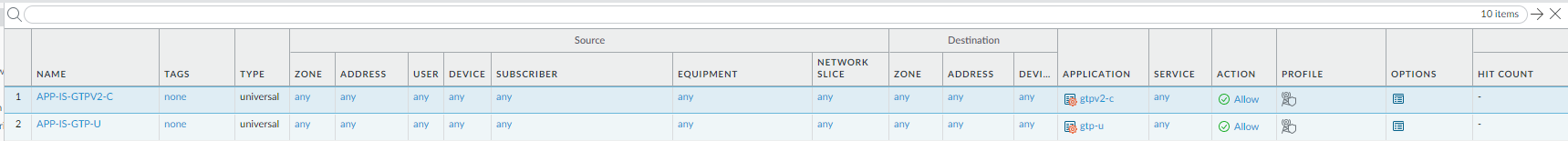 - >set gtp nodrop yesThe firewall continues to perform GTP stateful inspection and generate logs, but won’t drop GTPv2, GTPv1-C, or GTP-U packets that fail GTP stateful inspection. When you later decide to re-enable the firewall to drop packets that fail GTP stateful inspection, use the CLI operational command: set gtp nodrop no (this is the default setting).