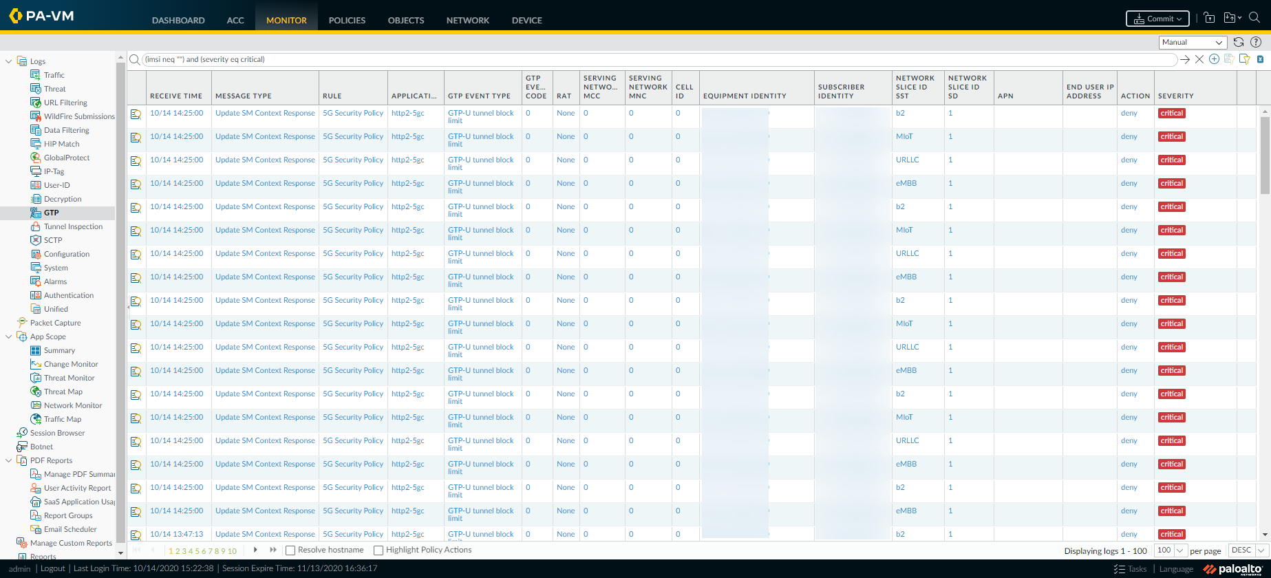 logs (if you have enabled GTP-U content inspection), give you visibility