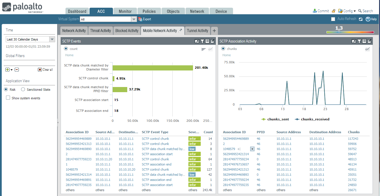 SCTP traffic, the firewall uses the SCTP logs to create a visual
