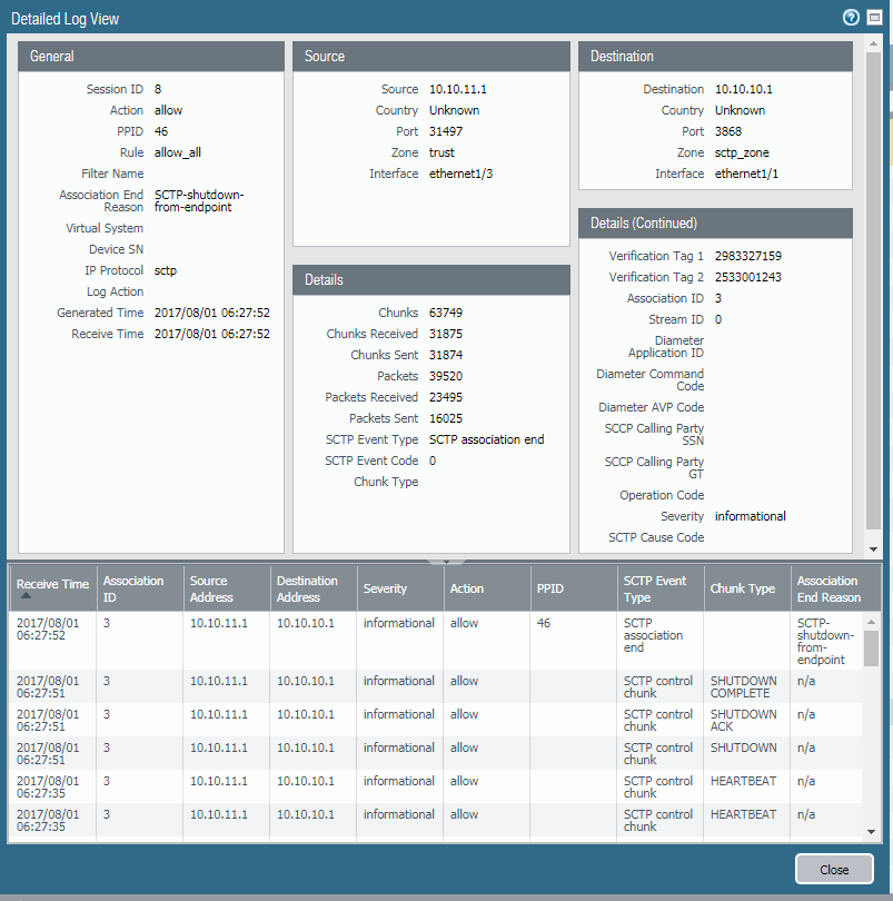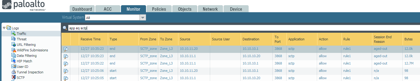 rule from an SCTP Protection profile. All other SCTP traffic logs