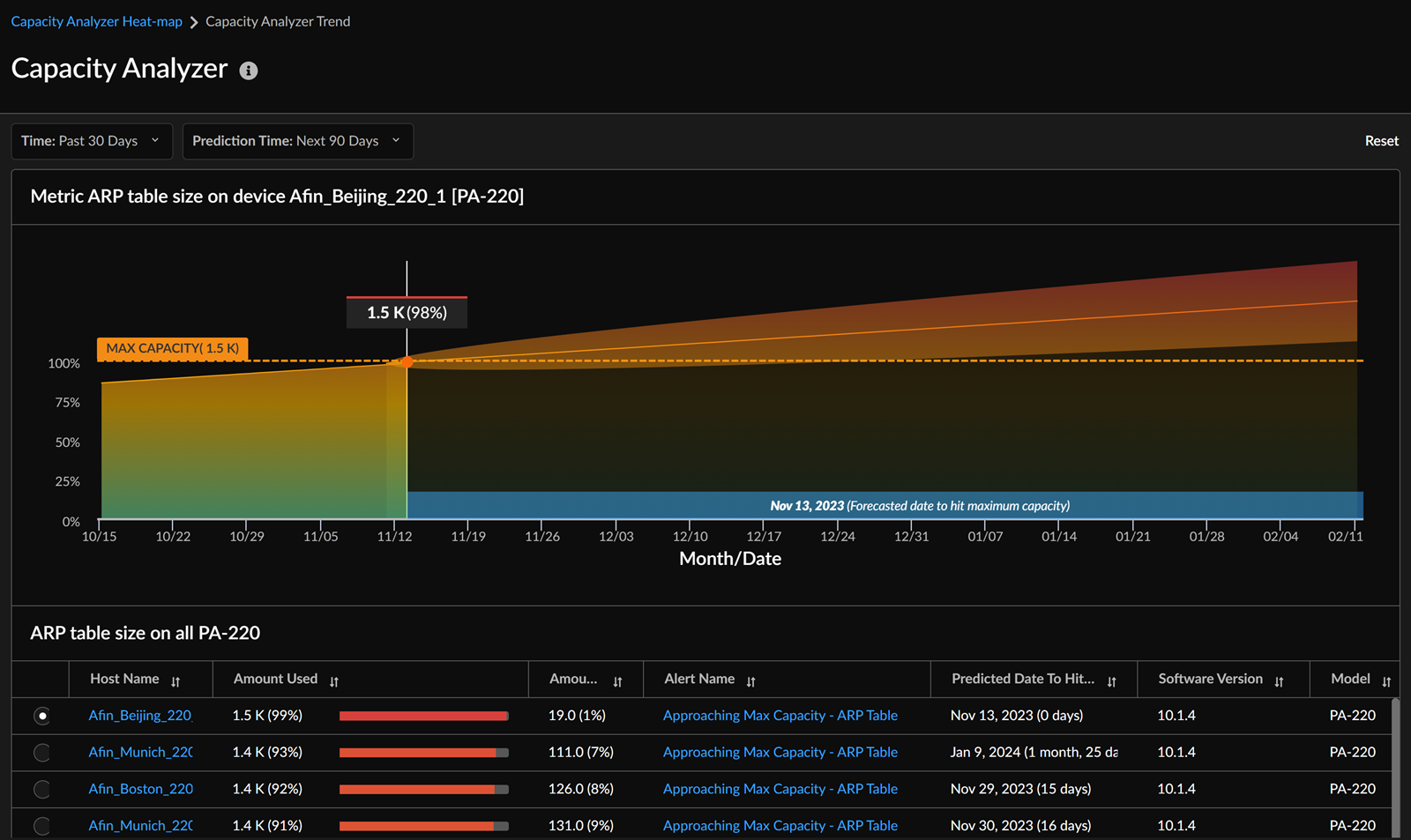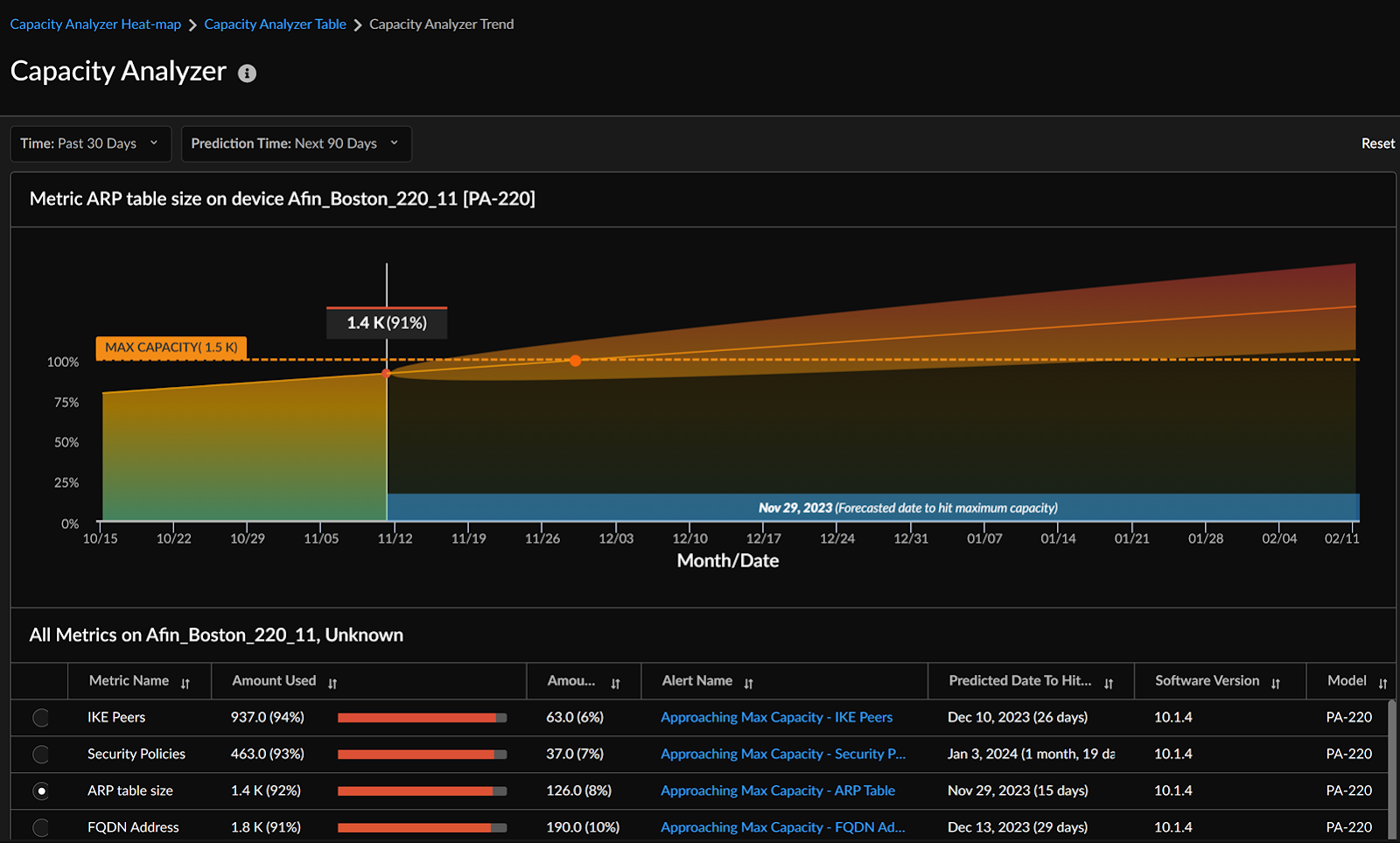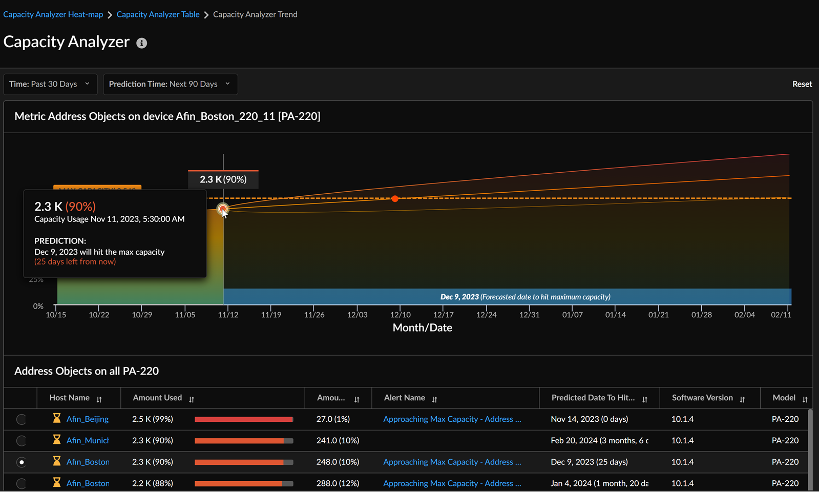 the metric. Strata Cloud Manager forecasts the date when the metric will hit
