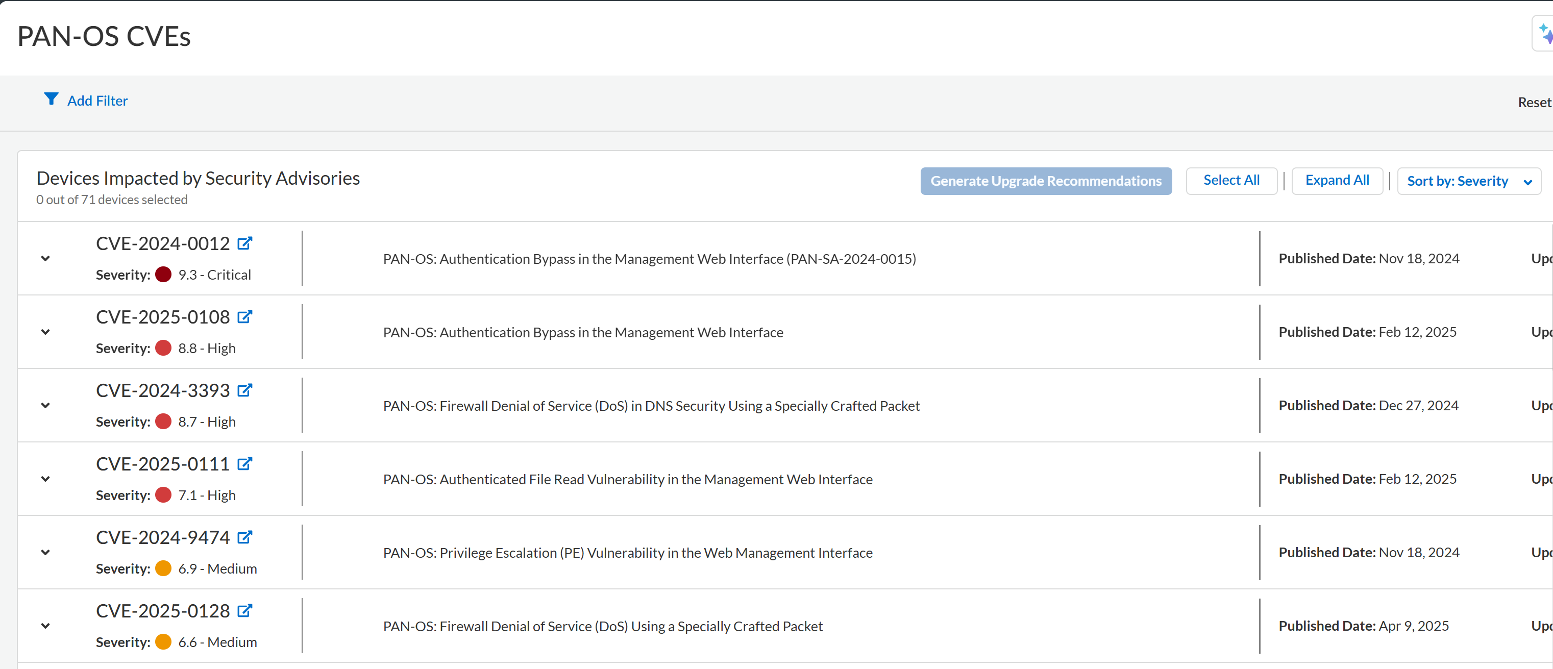 patching using the Upgrade Recommendations feature. Expand the CVEs and select