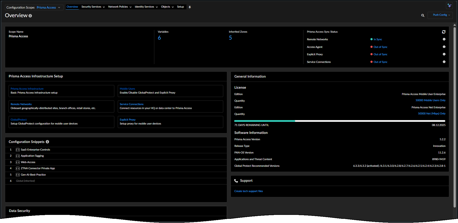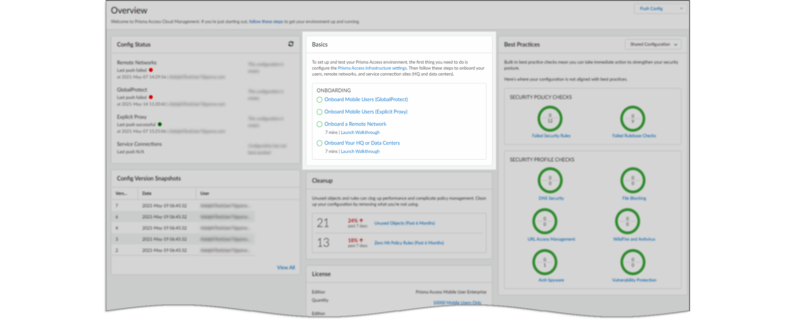 - Review License details to see what’s included with your Prisma Access subscription.