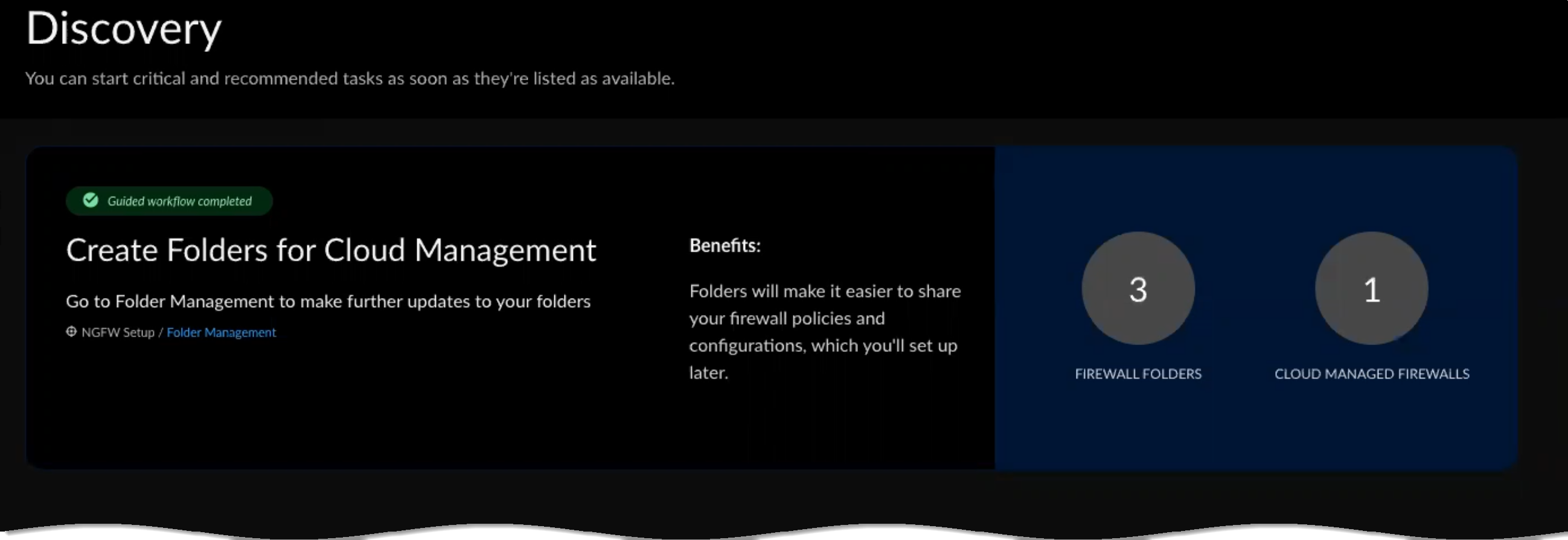 You'll see the folders you created and the firewalls you assigned on the main Discovery page, as well as under the System SettingsFolder Management tab.