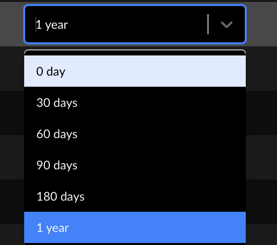 Set the maximum number of log retention days for log types.