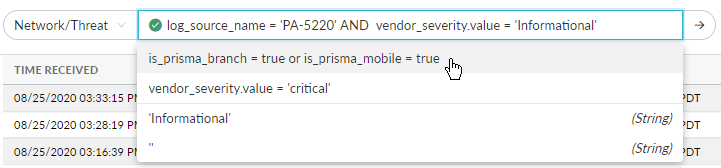 - No subnet masks. To return IP addresses with subnets, use the LIKE operator. Example: src_ip.value LIKE “192.1.1.%”.