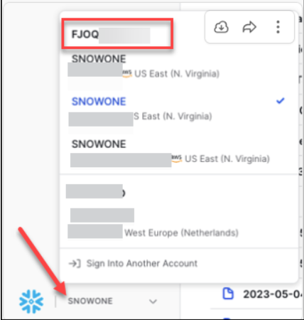 Configure the log forwarding profile to forward logs to Snowflake.- Enter a descriptive Name for the profile.Enter the Account Identifier of your Snowflake account. Ensure to replace the period with a hyphen in the Account Identifier.You can get the name from the Snowflake Console. Click the account name next to the Snowflake icon on the lower left of the screen. The Account Identifier is displayed at the top on the pop-up window.
