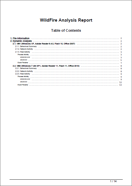3. Click WildFire Report. The ESM Console displays the cached report.