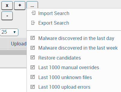 - Browse to and Upload an XML file containing a previously saved search query. The Hash Control page automatically applies the imported search query.