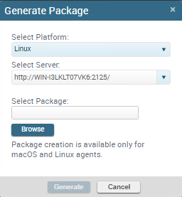 - Click Generate.When the installation package is available, the ESM Console displays a new record in the Installation Package table indicating the time the package was created and a link to Download the installation package.To view the status of the installation package, you can also filter the ESM logs (MonitorESMLogs) for a Report Type of Installation Package. The log message indicates whether the ESM Console successfully generated the package.