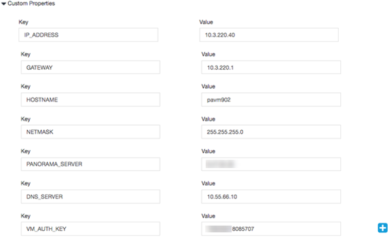 ./nfvpt.py -o Palo-Alto-9.1.0 -i PA-VM-KVM-9.1.0.qcow2 -n PAN902 -t FIREWALL -r 9.1.0 --monitored false --privileged true --bootstrap /config/init-cfg.txt:init-cfg.txt,/license/authcodes:authcodes --min_vcpu 2 --max_vcpu 8 --min_mem 4096 --max_mem 16384 --min_disk 10 --max_disk 70 --vnic_max 8 --optimize true --console_type_serial true --profile VM-100,"VM-100 profile",2,7168,61440 --default_profile VM-100 --custom HOSTNAME:hello --custom IP_ADDRESS:10.2.218.24 --custom NETMASK:255.255.255.0 --custom GATEWAY:10.2.218.1 --custom DNS_SERVER:10.55.66.10 --custom PANORAMA_SERVER:0.10.10.0 --custom VM_AUTH_KEY:123451234512345