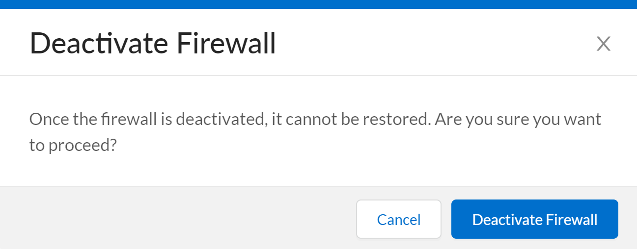 - Click Deactivate Firewall to confirm deactivation of