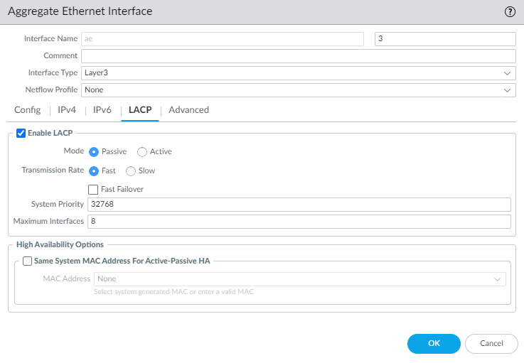 in HA Passive State.Do not select Same System MAC Address for Active-Passive HA. This option makes the firewall pair appear as a single device to the switch, so traffic will flow to both firewalls instead of just the active firewall.