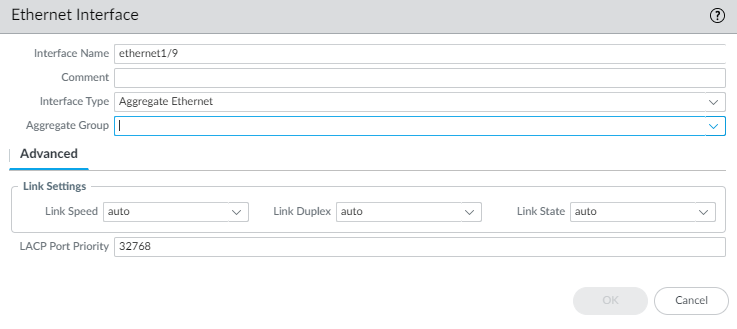 - Select Aggregate Ethernet from the Interface Type drop-down.