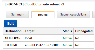 - From the VPC Dashboard, select Route Tables and find the route table associated with the private subnet.