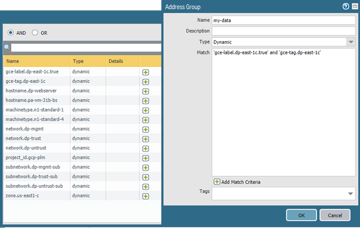 - Create Dynamic Address Group Membership Criteria