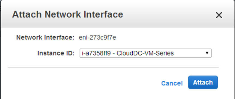 Select the Instance ID of the VM-Series firewall, and click Attach.Repeat the steps above for creating and attaching at least one more ENI to the firewall.(Not required for the Usage-based licensing model) Activate the licenses on the VM-Series firewall.This task is not performed on the AWS management console. Access to the Palo Alto Networks support portal and the web interface of the VM-Series firewall is required for license activation.See Activate the License.Disable Source/Destination check on every firewall dataplane network interface(s). Disabling this option allows the interface to handle network traffic that is not destined to the IP address assigned to the network interface.- On the EC2 Dashboard, select the network interface, for example eth1/1, in the Network Interfaces tab.In the Action drop-down, select Change Source/Dest. Check.Click Disabled and Save your changes.Repeat Steps 1-3 for each firewall dataplane interface.Configure the dataplane network interfaces as Layer 3 interfaces on the firewall.For an example configuration, see steps 14 through 17 in Use Case: Secure the EC2 Instances in the AWS Cloud.On the application servers within the VPC, define the dataplane network interface of the firewall as the default gateway.