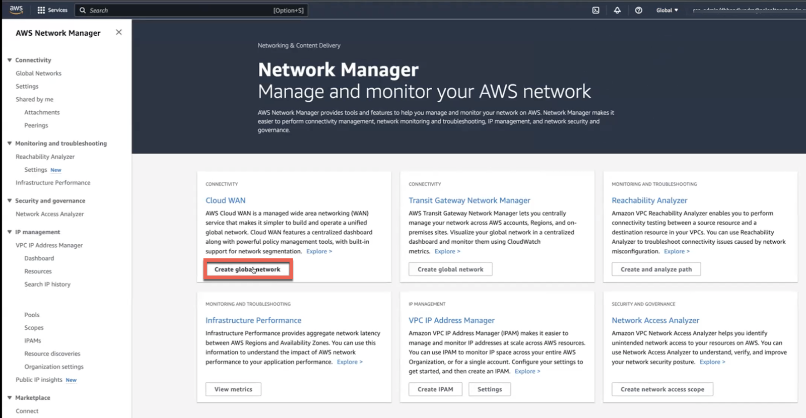 security appliances are set up, and traffic is routed in and out using Cloud WAN. Having