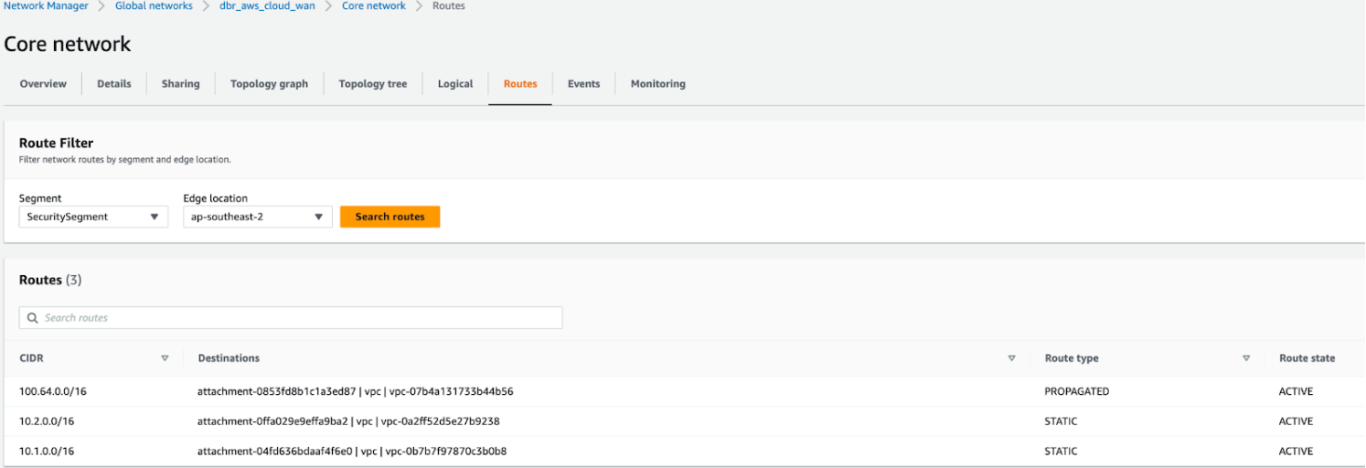 To enable communication between attachment VPCs and the Core Network, VPC Route