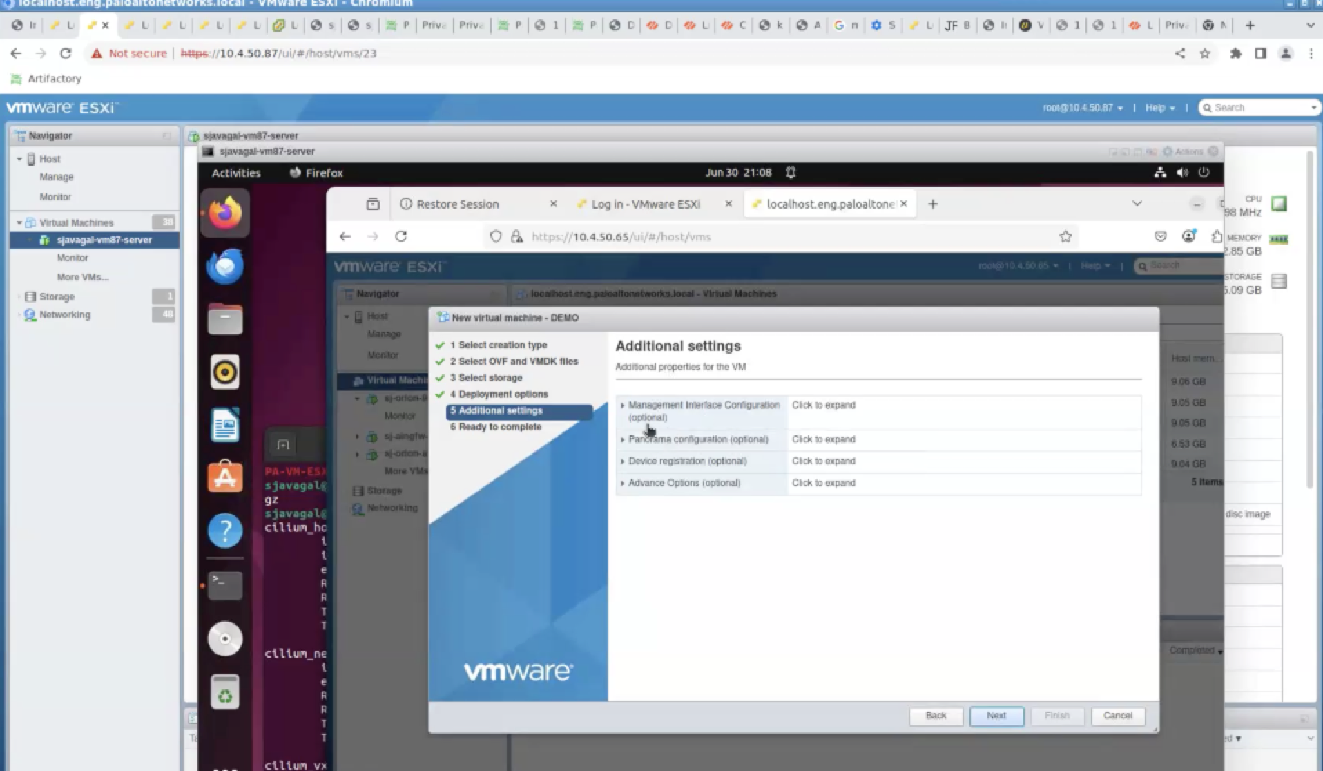 the experience of deploying the Palo Alto Networks (PANW) firewalls on ESXi, and