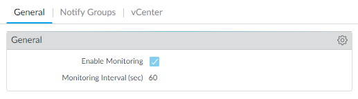 - Select PanoramaVMware vCenterSetupGeneral.Select Enable Monitoring. This enables monitoring for all vCenters in your deployment.Set the Monitoring Interval in seconds. The monitoring interval is how often Panorama retrieves updated network information from vCenter. The default value is 60 seconds and has a range of 60 to 84600 seconds.