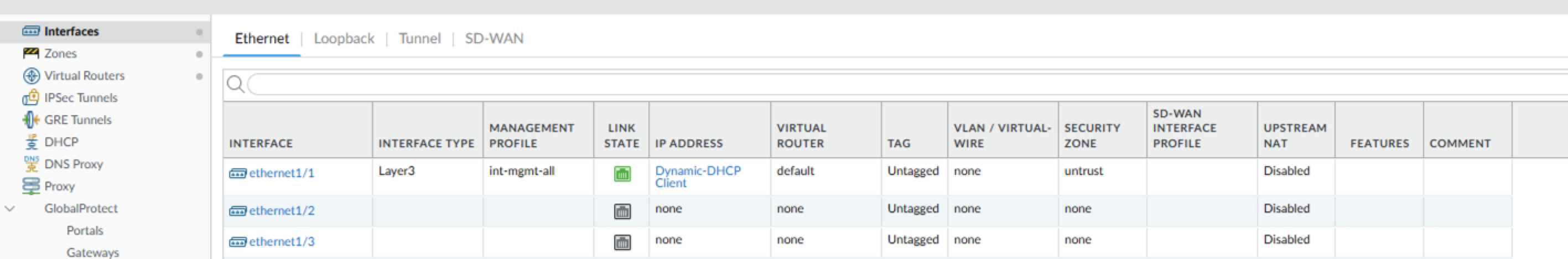 1. Configure ethernet1/1 for DHCP, enabling interface management to “allow all” and map it to the untrust zone.
