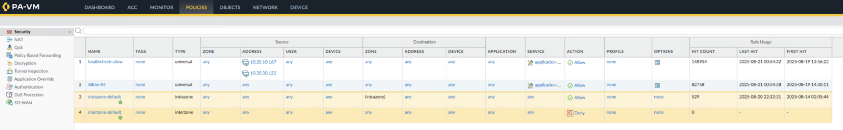 3. Configure the security policy to allow-all.