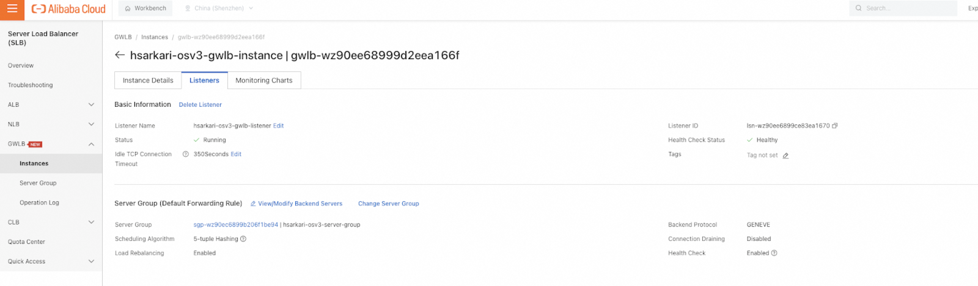 1. Click GWLB > Instances and click the instance ID.