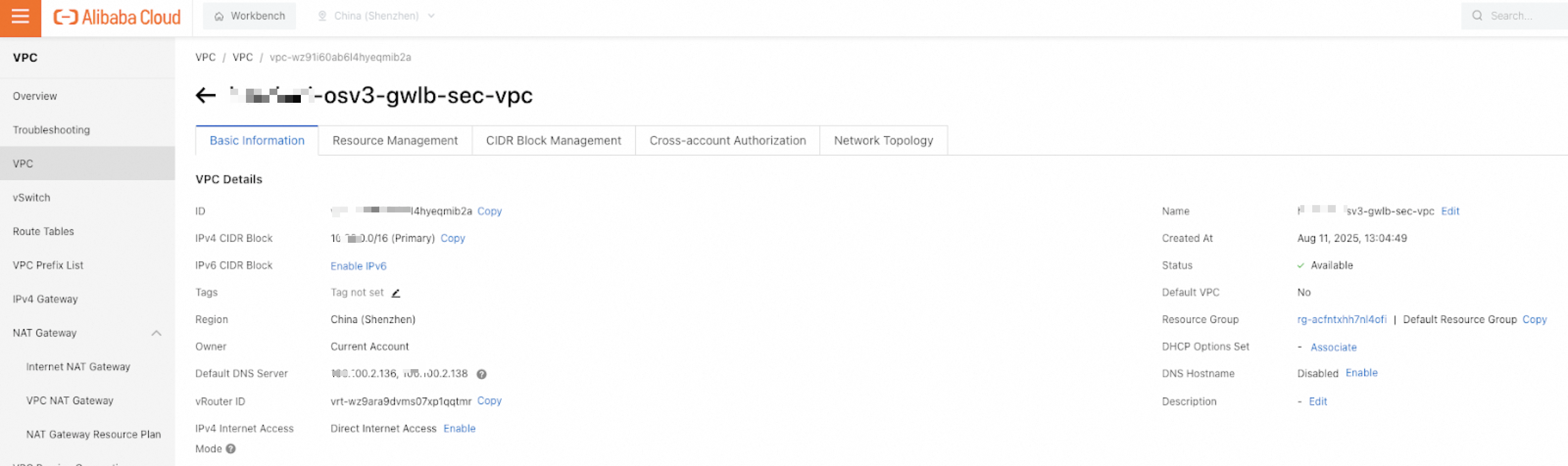 3. Configure the parameters on the Gateway Load Balancer - Alibaba Cloud International Site. The following table describes only the key parameters. Use the default values for other parameters. For more information about the parameters, seeCreate and manage a GWLB instance.