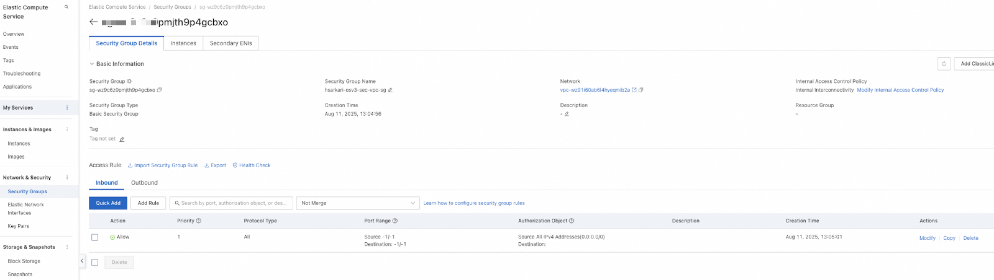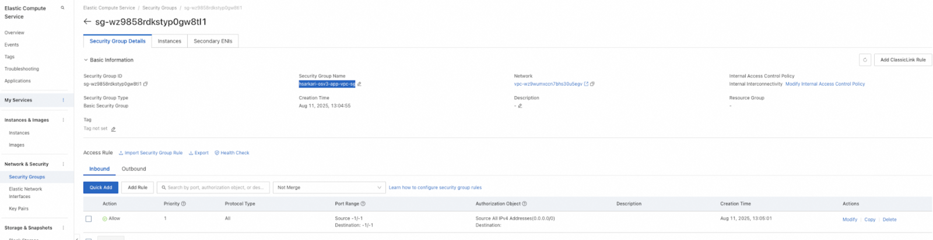 VPCSelect the security VPC in which the ECS instances are deployed.