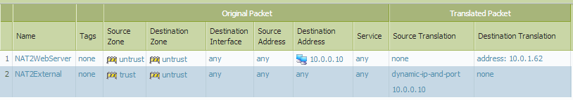 - Translated Address: 10.0.0.10 (the firewall dataplane interface in the untrust zone.)