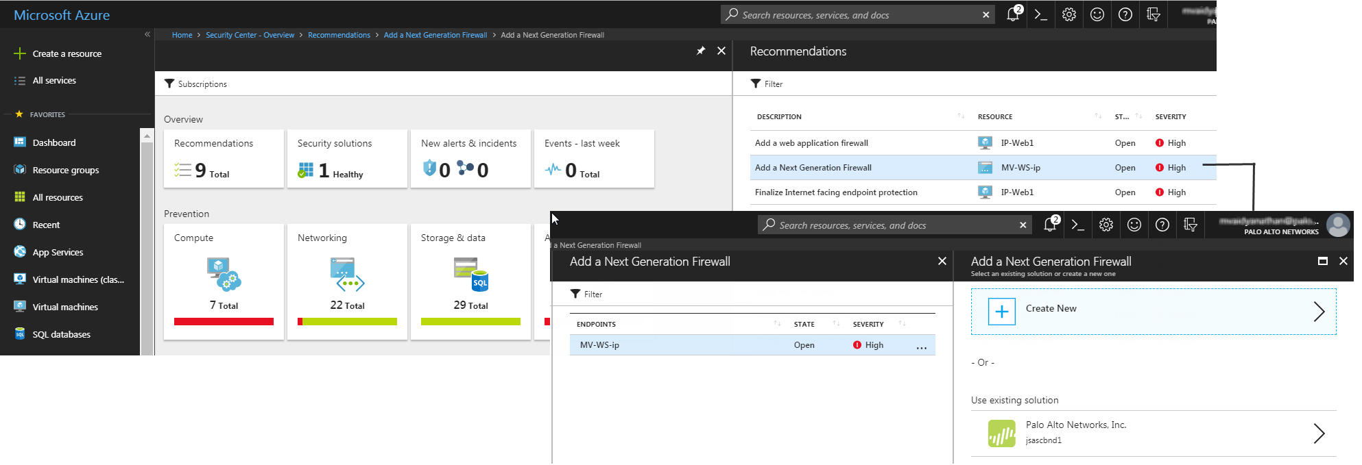 - Deploy the VM-Series firewall based on a recommendation on the Azure Security Center dashboard.