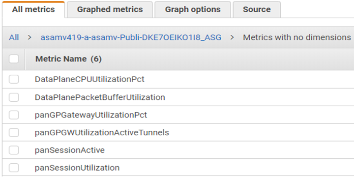 and select the metrics link to view the custom PAN-OS metrics.